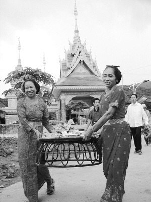 關(guān)門(mén)節(jié)上,傣家婦女用美食款待客人
