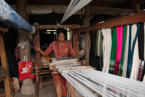 云南傣錦歷史悠久,風(fēng)格古樸,以其織工精巧、圖案別致、色調(diào)鮮艷、堅牢耐用和富有民族特色而著稱。它主要流傳和盛行于云南省南部的西雙版納傣族自治州,西南部的德宏傣族景頗族自治州、耿馬傣族佤族自治縣、景谷傣族彝族自治縣,以及孟連傣族拉祜族佤族自治縣等傣族較聚居的區(qū)域。云南傣錦是一種以絲線、毛線、棉線、麻線、晴綸線、金絲線等材料為原料,采用傣族傳統(tǒng)的木架織機(jī)手工操作,經(jīng)提花、織造等工藝形式制作成的長條形織錦物,是云南的傣族人民從事宗教活動和美化生活必不可少的物品。傣錦長短不一,幅寬一般為20-60厘米不等。因其花紋絢麗多彩、形象生動、變化多端 、呈立體形,在云南少數(shù)民族織錦中獨(dú)樹一幟,享有很高的聲譽(yù)。傳統(tǒng)的云南傣錦按構(gòu)成形式和材料主要有兩種即西雙版納傣錦和德宏傣錦。西雙版納傣錦以白色為底,用紅色和黑色緯線織成花紋,傣錦線條寬窄有致,形體夸張簡練,圖案較為規(guī)律化,具有粗獷的質(zhì)樸感和濃厚的裝飾性;而德宏傣錦則色調(diào)較為濃重,常用黑、紅、翠綠、黃、藍(lán)等濃艷色彩的絲線和棉線摻用金絲錦線織制,圖案以菱形、方形、六角形及回形紋等幾何形為主,織錦鮮艷奪目,結(jié)構(gòu)嚴(yán)謹(jǐn),紋飾古雅,尤顯華麗。