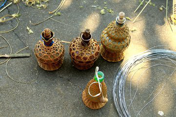 傣族竹編歷史悠久,制作精美,品種豐富,它與傣族人家生活息息相關(guān),是了解傣族文化不能缺少的一部分。對于傣族竹編來講,以編織工藝不同,可以把傣族竹編分為薄篾層編織出平面圖形的平面竹編;用橫截面為矩形的竹絲編織立體造型的立體竹編;將平面竹編和立體竹編編織工藝糅合在一起,編制成既有平面質(zhì)感又有立體形狀的混合竹編。傣族竹編是藝術(shù)創(chuàng)作和藝術(shù)再創(chuàng)作,竹編工藝品可分為粗絲工藝品和細(xì)絲工藝品。粗絲竹編工藝品主要有茶杯、糖缸、飯盒、檳榔盒、茶葉罐等,細(xì)絲竹編工藝品主要有竹包手袋、挎包和帽子等,它們集實用和觀賞性于一體。例如傣族的“芭蘿”,“芭蘿”是傣族,是一種掛在腰間的竹簍。“芭蘿”編織精巧,美觀實用,不僅是生產(chǎn)、生活用具,還是精致的裝飾品,還是傣族青年表達(dá)愛情的傳遞物。