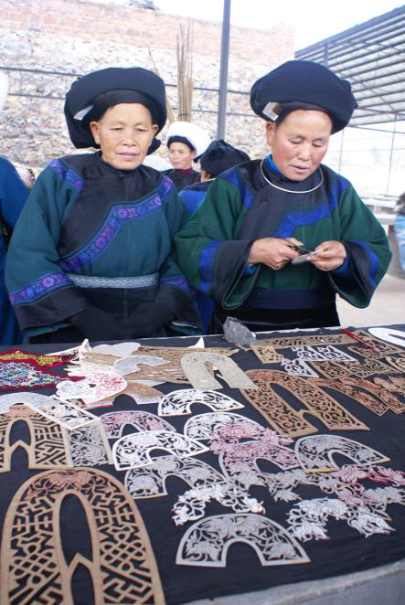 水族的民間工藝主要有剪紙、刺繡、染織、編織、銀飾加工、陶瓷、雕刻等,其中刺繡、染織和雕刻最為有名。水族的民間剪紙藝術(shù)歷史悠久,剪紙的內(nèi)容多種多樣,有表現(xiàn)吉祥的龍、鳳、麒麟、梅花鹿,也有花鳥(niǎo)魚(yú)蟲(chóng)等自然現(xiàn)象,造型千姿百態(tài),生動(dòng)別致,栩栩如生。水族婦女的刺繡主要有平繡、馬尾繡、空心繡、挑繡、結(jié)線繡、泡繡等。水族的編織主要是竹編,他們用竹子編織成席子、躺椅、坐椅、斗笠、簸箕、籃子、魚(yú)簍、雞籠等日常用品。水族的雕刻工藝十分發(fā)達(dá),主要有木雕和石雕。水族的木雕多見(jiàn)于房屋的窗花雕刻,床沿雕刻等,雕出的圖案諸如龍鳳呈祥、花鳥(niǎo)浮雕等都很美觀大方。