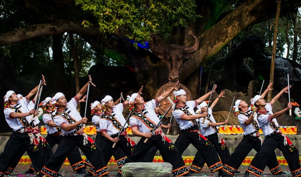 傳說,勞道炯六歲時死了阿媽,家里只有一個阿爸,兩人相依為命。山林里的樺桃樹葉又換了八次,勞道炯的年紀長到十四歲。他練得一身爬山上樹的好本領(lǐng),學(xué)得一手射弩的好技術(shù)。他叫阿爸打一把刀給他,他要去砍火地、種莊稼,供養(yǎng)阿爸。