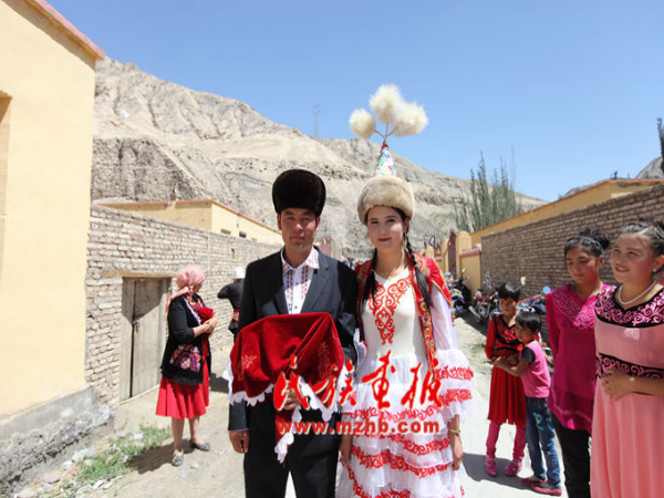 新郎買(mǎi)買(mǎi)提義薩克·阿布都薩拉木與新娘齊曼古麗·買(mǎi)買(mǎi)提艾孜木