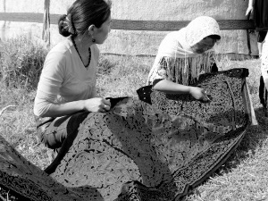 到達鄉(xiāng)里的時候,聽說有幾座新落成的房子是刺繡基地。走進基地,幾間房里都是正在專心致志刺繡的柯爾克孜族女人。瑪利亞就是其中的一個。