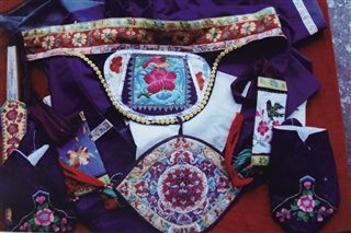 “鳳凰點頭裙子飄,三寸金蓮顯婀娜”。這是民和土族服飾的真實寫照。土族婦女的服飾,不但燦爛華麗,其刺繡技藝之高,做工精致考究令人嘆為觀止。