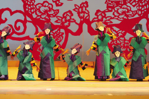 達斡爾族有語言沒有文字,然而在《神奇的達斡爾》演出現(xiàn)場,觀眾卻能夠感受到演員通過聲音和肢體語言記錄下來的活的文字,并且重新思考非物質文化遺產的意義所在。近兩個小時的演出,觀眾對達斡爾族的非物質文化遺產有了直觀的感受:達斡爾族搖籃,它的制式體現(xiàn)了達斡爾人對生命的思考和對自然的尊重;哈尼卡,達斡爾族傳統(tǒng)的剪紙藝術,伴隨著金色的童年,充實著達斡爾人色彩斑斕的心靈世界;達斡爾族頸力賽,勞動之余一項普及性民間傳統(tǒng)體育競技運動,給人們平常的生活帶來無窮的樂趣——它們,都于2007年被列入第一批內蒙古自治區(qū)非物質文化遺產保護名錄。不僅如此,曲棍球(達斡爾語為“波依闊”,達斡爾族人喜愛的民間傳統(tǒng)體育項目)、魯日格勒(達斡爾族民間舞蹈,多表現(xiàn)狩獵生活和勞動場面)、烏春(達斡爾族特有的說唱藝術)還被列入第一批國家級非物質文化遺產保護名錄。