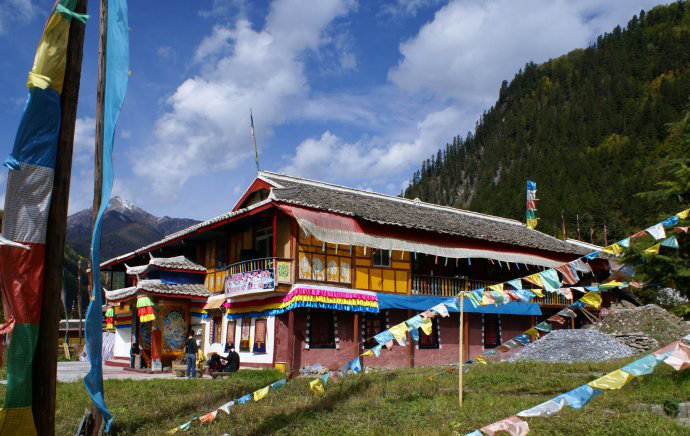 九寨溝里九個(gè)古老的藏族村寨,到處有石磨房、棧道、經(jīng)幡和藏羌歌舞等,藏族特色濃郁而神秘。原始古樸的村寨散落在綠樹環(huán)抱的群山之中,顯得更加古老、寧靜。九寨溝,平均海拔在2500米左右,屬于寒溫帶地區(qū),所以冬無嚴(yán)寒,夏無酷暑,在這里的傳統(tǒng)的建筑大都為木結(jié)構(gòu)。
