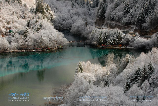 九寨溝四周群山聳峙,有雪峰數(shù)十座,高插云霄,終年白雪皚皚。河谷地帶奇水薈萃,其間有成梯形分布的大小湖泊114個(gè),瀑布群17個(gè),鈣華灘流5處,泉水47眼,湍流11段,以1870米的海撥高差,在12 座雪峰之間穿林跨谷,珠連玉接,呈Y字型串珠,逶迤近60公里,形成了中國唯一、世界罕見的以高山湖泊群和瀑布群以及鈣華灘流為主體的風(fēng)景名勝區(qū)。湖泊小者數(shù)平方米,最大的長海長達(dá)7公里。湖水終年碧藍(lán)澄澈,色彩斑讕,在陽光照射下,呈現(xiàn)出藍(lán)、黃、橙、綠等多種色彩,絢麗奪目。天氣晴朗時(shí),藍(lán)天、白云、雪山、森林倒映湖中,水光浮翠,美麗如畫,并隨季節(jié)推移呈現(xiàn)出不同的色彩和風(fēng)韻,有“九寨歸來不看水”之說。