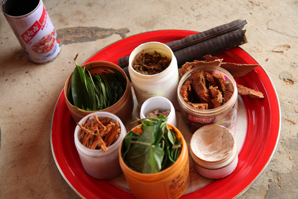 西雙版納的布朗族,中午習(xí)慣吃冷飯,并習(xí)慣用竹節(jié)或芭蕉葉常食用的毛薯、芭蕉根、白花豆、野百合、竹筍、木耳和雞(土+從)等三十余種。肉類以牛、羊、豬、雞肉最為常見,也常捕食野味和昆蟲。