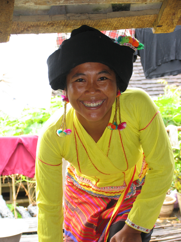 婦女的衣裙與傣族相似,上穿緊身短衣,頭頂挽髻,用頭巾纏頭,喜歡戴大耳環(huán)、銀手鐲等裝飾。姑娘愛戴野花或自編的彩花,將雙頰染紅。一般,女子上著左右兩祚斜襟窄袖黑色小褂,小褂為圓領(lǐng)、緊腰、寬擺,短及臀部,在左肋下拴線打結(jié),已婚婦女用黑色布料,未婚姑娘喜淺藍(lán)色或白色。里衫為無袖貼身夾衫,下穿兩條筒裙,內(nèi)裙為白色,外裙有兩色,臀部以上為紅色橫條,腿下為綠色或黑色,用布條或花邊鑲飾。未婚婦女用黑或藍(lán)布包頭;已婚婦女梳發(fā)髻,插銀簪,頂端鑲3顆棱形玻璃珠,下系銀鏈,纏包頭。婦女戴銀耳環(huán)、項圈、手鐲等飾品。