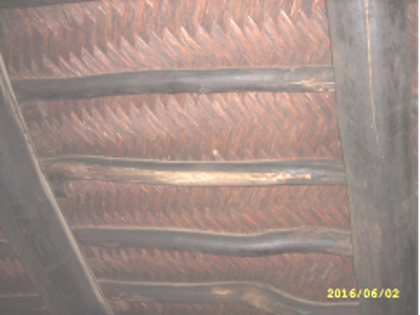 如今,錫伯族人多建蓋被稱為“來蘭皮”的房屋,大多為土木結(jié)構(gòu),木料為骨架,土坯為墻,有的有“瑪圖”(擋風(fēng)的屏墻)。其大致造法是:當(dāng)房屋壘到一定高度后,梁上放椽子,然后是檁條。把比碗口粗的椽子從中間鋸成兩片(細(xì)一些的不鋸)在墻上水平放7、9、11根(奇數(shù))。把剝了皮的葦桿(蘆葦桿踩扁后泡在水里數(shù)天,使之不易扯斷),俗稱“葦子把”,5-6根一把,用葦子隔3-4厘米一把扎在橫椽底下,在葦子上面抹粗麥葉子泥,等干后,房子里層再抹細(xì)泥上光,稱之為“來蘭皮”。在來蘭皮上面壘山墻封頂。