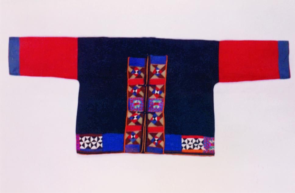 剪花衣又為“縑花衣”,是清末明初阿昌族已婚婦女的一種上衣,主要流行于云南省德宏傣族景頗族自治州梁河縣阿昌族地區(qū)。這種衣服的特點是:毛質(zhì)地,多為深色,長袖圓領(lǐng)對襟,釘圓銅扣,前襟和衣服四周均用各種顏色的方形或三角形布片鑲縫成幾何形圖案。中間還夾雜著刺繡花紋圖案。過去,姑娘出嫁與新郎拜堂和年老去世時都要穿著剪花衣服。前者表示夫妻白頭偕老,生死不離;后者被認為到陰間可以和親人相會團聚。久而久之,穿剪花衣成為阿昌族的特定風俗。