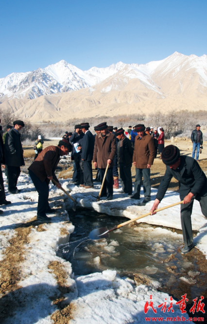 塔吉克人破冰引水,為春耕做好準備。袁東平 攝影 引自民族畫報