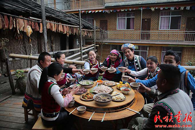 怒族習(xí)慣于日食兩餐。其主食絕大部分以玉米為主。玉米的食用方法從爆米花逐漸發(fā)展為煮燜成咕嘟飯(類似玉米...