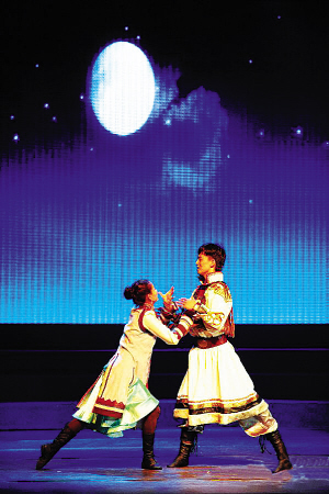 彩虹是鄂溫克族的吉祥物。該劇運(yùn)用象征的手法,通過民族歌舞的形式將具象化的表演和意向化的彩虹融入到劇情中,反映了鄂溫克人民熱愛生活、熱愛家園、不屈不撓的奮斗精神,同時也展現(xiàn)了鄂溫克民族長久以來具有的深厚民族文化底蘊(yùn)和絢麗多彩的民族風(fēng)情。
