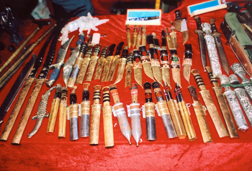 手工業(yè)和商業(yè)方面,保安人早期就有自制土槍、弓箭、小農(nóng)具、腰刀等手工制品的傳統(tǒng),其中保安腰刀由于技藝精湛更是成為聞名遐邇的工藝品。而保安族的男子都會以這些手工制品為小商品從事商業(yè)活動,經(jīng)商的保安人被稱為“藏客”,除了當?shù)氐男∩唐吠?,他們還會從各地采購鹽、茶、碗、棉布等商品出售,甚至遠銷西藏、印度。保安族聚居的積石山與青海的民和、循化三縣交界處,曾是古絲綢之路上的重要通道,明清時期,保安城址是塞外的商業(yè)據(jù)點之一,而在民國初年這里已經(jīng)形成集市,還產(chǎn)生了幾家比較大的商鋪。