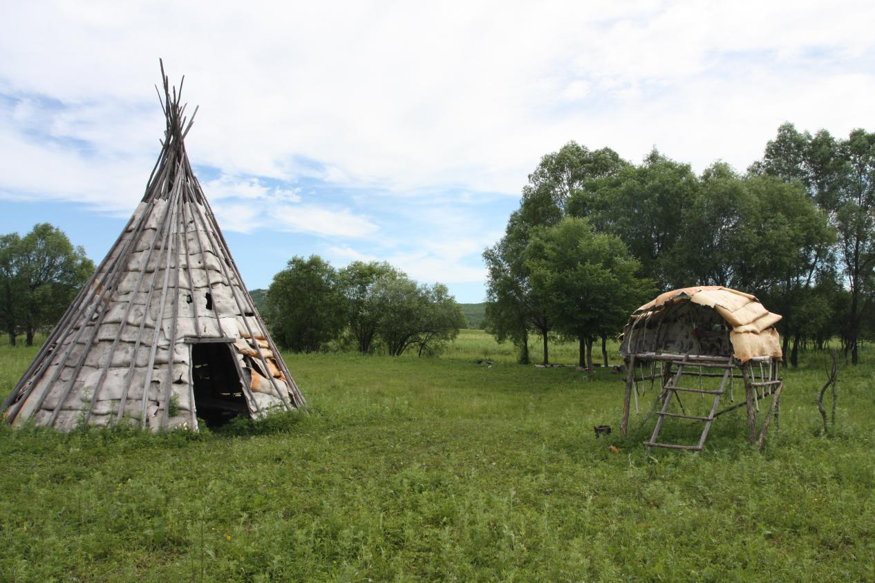 游獵時期居無定所,所以鄂倫春人居住的房屋是便攜式的“斜仁柱”?!靶比手睘槎鮽惔赫Z,意為木桿房屋。所...