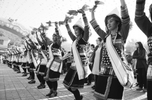 2014年2月6日,云南西雙版納傣族自治州景洪市基諾山鄉(xiāng)人頭攢動(dòng),歡聲笑語(yǔ)。來自四面八方的賓客云集在大鼓舞廣場(chǎng),與基諾族同胞一起歡度“特懋克”節(jié)。