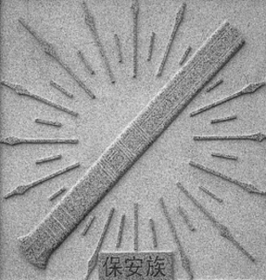 保安族擅長打刀技術(shù),所產(chǎn)刀具構(gòu)造精巧、質(zhì)量上乘,工藝獨成一體,被稱為“保安腰刀”。保安人打制腰刀具有800多年的歷史,公元13世紀(jì)成吉思汗東征時,把部分來自中亞的官兵和工匠留在青海同仁地區(qū)。這部分色目人與當(dāng)?shù)孛晒拧h、回、藏、土等民族相鄰而居,相互交流融合,逐步形成了今天的保安民族。保安族發(fā)揮擅長冶鐵技術(shù)的特長,所生產(chǎn)的腰刀不僅自用,還成為與蒙古、藏、回等民族交換牛羊和日用品的商品,因此逐漸聞名于世。