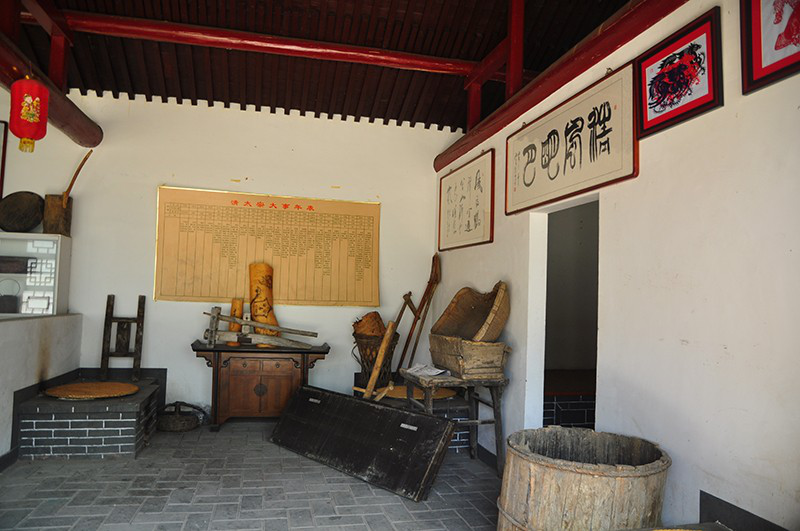 村委會大院被改造成小型的滿族文化廣場,矗立著滿族祭祀所用的索倫桿,一旁則是滿族文化展室。它將滿族傳統(tǒng)建筑形式即俗稱的“口袋房、萬字炕,煙筒建在地面上”的風格展現(xiàn)得淋漓盡致,外觀古樸雅致,青磚青瓦與紅色門窗遙相呼應(yīng)。走進室內(nèi),李鳳田又介紹說,滿族人以西為大,進門的一間是灶房,西側(cè)才是起居室?!捌鹁邮彝ǔJ莾砷g或三間相連而成,又稱上屋,里面南、北、西三面筑有大土坯炕,形似‘萬’字,也就是滿族人所說的萬字炕。萬字炕的南北炕與屋子的長度相等,是典型的東北大炕。而正面的西炕較為狹窄,僅供擺放貢品使用,不能在上面放雜物。否則,是對祖宗大不敬。”