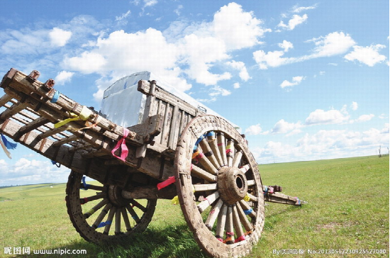 蒙古族牧民常用的一種木制大輪車。多用樺木或柳木制做。車輪高約1米,車身重約百斤,可載重300—450公斤,日行約30余公里。每車用一頭牛來拉,一人可駕馭數輛,適于在草原、沙漠、雪地等行走。亦可將數十輛勒勒車首尾相接形成近百米長的車隊,十分壯觀,也形成了草原上特有的風情。現(xiàn)在已多被膠皮鐵輪的軸承車所替代。另外還有一種“蒙古轎車”,是一種在勒勒車基礎上經過改造專門乘人的車。其與勒勒車不同之處在于車體上有用柳條子彎曲后扎成的車棚,棚子的外面用毛氈包圍,形成一個既擋陽光,又擋風雨,防曬御寒的帳篷。