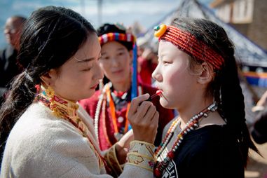 丹巴女子的成人禮(成年儀式)有著久遠(yuǎn)的歷史,也是一項(xiàng)傳統(tǒng)的選美、賽美活動(dòng)。成人禮一般以自然村落為單位,由活佛或者吉祥老人選擇吉日或是農(nóng)閑時(shí)間舉行。成人禮在藏語中稱為“幾薩”,是“穿成年新裝”的意思。當(dāng)?shù)貪h語又叫“戴角角”,意指行成人禮的女孩要梳扎像牛角一樣的發(fā)束,造型奇巧別致。小女孩長到16歲行過成年禮之后才算長大成人,才能夠戀愛結(jié)婚。所以,成人禮對(duì)每一個(gè)嘉絨姑娘來說都是人生歷程中的一件大事。嘉絨藏族非常重視對(duì)后代的教育,女人是部族的靈魂。所以女子成人禮充分體現(xiàn)嘉絨藏族關(guān)愛后輩、尊重女性的民間習(xí)俗,具有強(qiáng)烈的地域特色,顯現(xiàn)出鮮明的個(gè)性特點(diǎn)和母系氏族社會(huì)文化的基因。