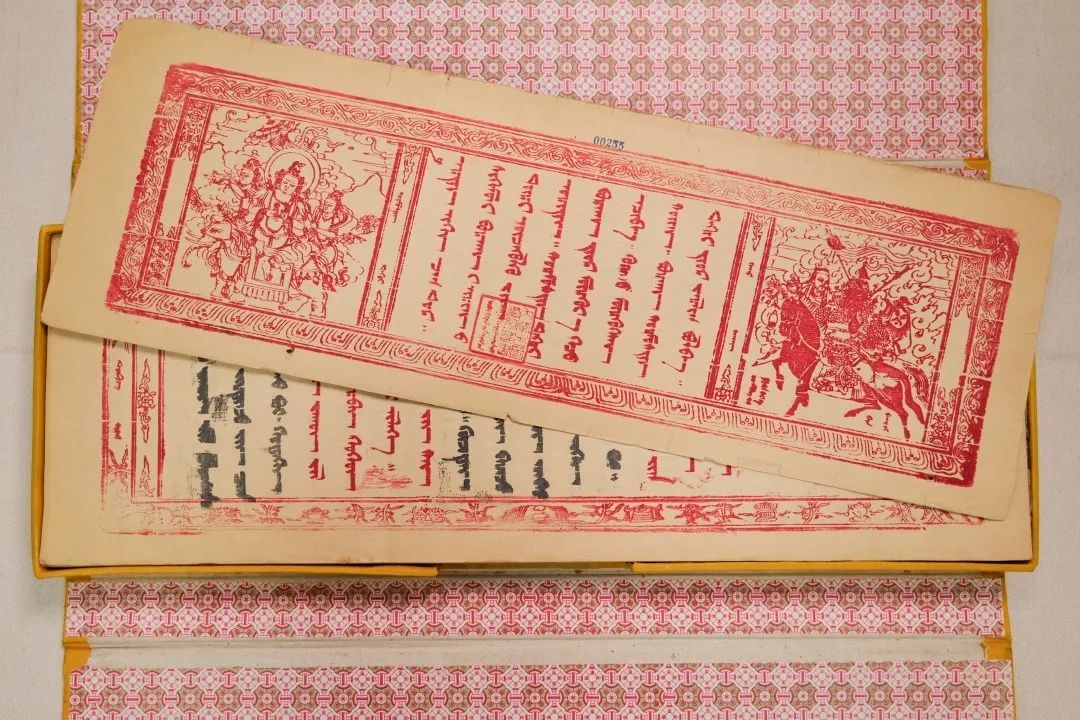 今天我們主要講述的是1716年北京木刻本蒙古文《格斯爾傳》(全稱為《十方圣主格斯爾可汗傳》)是清康熙五十五年(1716)北京木刻本。梵夾裝,1卷(176葉),每頁26行,每行6個字,約5萬多字,頁面高17.2cm、寬52cm,版框高13.5cm、寬46.5cm。版框左側有漢文《三國志》三字,首頁刻有朱印佛像。