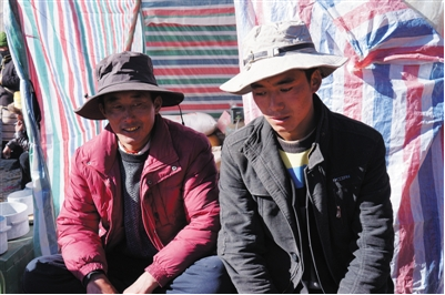 賣木碗的是兩兄弟,哥哥查司今年41歲,弟弟普布次仁30歲,木碗的制作工藝是他們家一代一代傳下來(lái)的。在他們的攤位上,除了“鎮(zhèn)店之寶”——那只大型木碗外,還擺滿了各種規(guī)格的木碗,均只涂了一層清漆,加上木碗本身的顏色,在陽(yáng)光下熠熠發(fā)光。有趣的是,兩只大小規(guī)格完全相同的木碗,價(jià)格卻有天壤之別,一只要賣1000元,一只只賣500元。將兩只碗拿過(guò)來(lái)仔細(xì)看,便宜的那只非常光滑,只有一種純粹的顏色,貴的那只看起來(lái)有許許多多的小坑和斑點(diǎn)。據(jù)介紹,這些斑點(diǎn)和小坑,都是木材本身的紋理,價(jià)格也正是貴在這里。