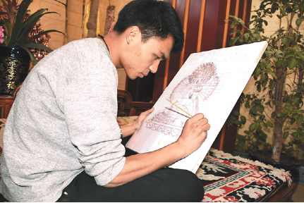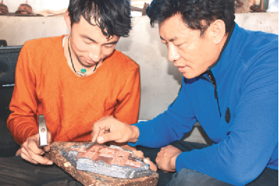 技藝上的登峰造極,次嘎把這一秘笈歸結(jié)成幾個平常的字眼:“興趣和堅持”。從小受家族文化的熏陶,兩個兒子對傳統(tǒng)文化有著濃厚的興趣。薪火相傳也成了次嘎肩上的責(zé)任。20出頭的大兒子扎西拉達穿著白T恤,皮膚白皙、手指纖長、陽光帥氣,立志要子承父業(yè)。“父親告訴我即便是要做一名手工藝人,也不能放棄對文化知識的學(xué)習(xí),從小便把我送到內(nèi)地學(xué)習(xí)?,F(xiàn)在,我長大了,該回來了?!?扎西拉達的話語堅定。