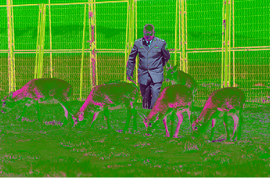 在可可西里國家級(jí)自然保護(hù)區(qū)索南達(dá)杰保護(hù)站,站長趙新錄與藏羚羊在一起(9月28日攝)。新華社記者 李占軼 攝