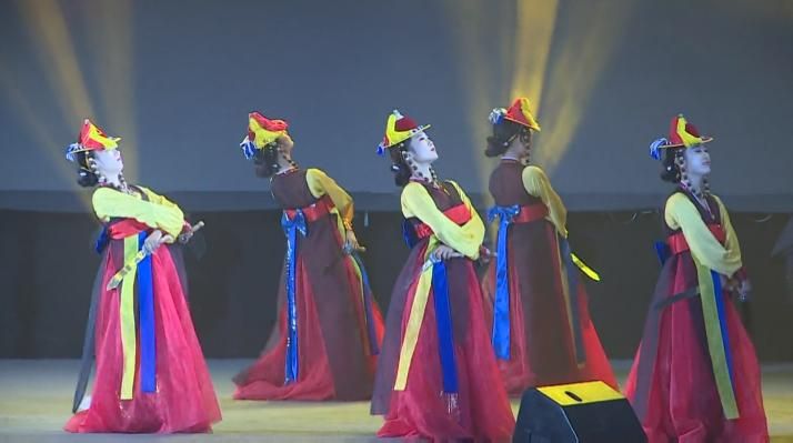 關(guān)于刀舞的由來(lái),也有一段令人神往的傳說(shuō)。新羅國(guó)有位名叫黃昌郎的壯士,7歲的時(shí)候就能揮舞長(zhǎng)劍表演,氣勢(shì)如虹。他一人來(lái)到百濟(jì)市舞劍,觀眾圍得里三層外三層,深深為他的劍術(shù)所吸引。百濟(jì)王聽(tīng)說(shuō)以后,召黃昌郎入宮表演。黃昌郎借舞劍之機(jī),刺殺百濟(jì)王,結(jié)果最終被人殺害。新羅國(guó)的人民為了緬懷黃昌郎的義舉,面帶假面具,手持折半的刀,照他從前表演的舞姿跳舞。刀舞于是由此而來(lái)。刀舞與劍舞一樣,雄壯、勇猛、躍動(dòng)的舞姿貫穿舞蹈的全過(guò)程。刀舞有很強(qiáng)的隨意性,沒(méi)有統(tǒng)一的套路,舞者的基本動(dòng)作合著打擊樂(lè)節(jié)奏可隨意發(fā)揮。舞蹈反映了朝鮮族人民勇敢、大膽、智慧、樂(lè)觀的民族氣概。舞蹈姿勢(shì)剛?cè)嵯酀?jì),激舒并存,急緩相容,像疾風(fēng)般的向前沖,左右猛刺,輕快猛移等動(dòng)作,“喀嚓”、“喀嚓”的揮刀聲以及浪漫的舞態(tài),給人以強(qiáng)烈的號(hào)召感,體現(xiàn)了朝鮮族舞蹈的高超技藝。