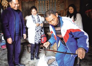 在村里修復(fù)舊屋的趙貢彩接到游客電話,馬不停蹄地趕回家中,自家手工制作的苕粉成了游客心心念念的香餑餑。拿出早已生銹的秤桿,一袋袋苕粉被游客搶著購買?!岸际橇糁约页缘?,哪想著能賣出去喲?!毙χf罷,趙貢彩拿出手機(jī),微信一掃,錢款立即到賬。