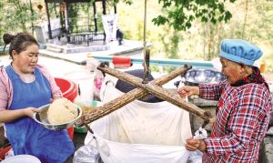 70多歲的趙開娥和63歲的趙素嬋共同開起蕎面攤,現(xiàn)搟、現(xiàn)切、現(xiàn)煮,看得見的好手藝引游客紛紛夸贊。