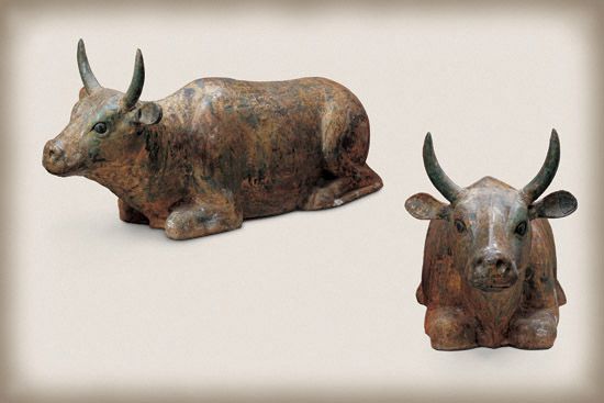 另一方面,西夏墓中隨葬制作如此精美的銅牛,說明了牛在西夏農業(yè)生產中的重要地位,為我們研究西夏社會的農業(yè)經(jīng)濟提供了一個實物佐證。敦煌榆林窟壁畫中的西夏農耕圖,描繪出西夏同中原地區(qū)一樣的 “二牛抬杠”的犁地場景。牛耕在發(fā)展西夏農業(yè)經(jīng)濟中無疑起了很大作用。