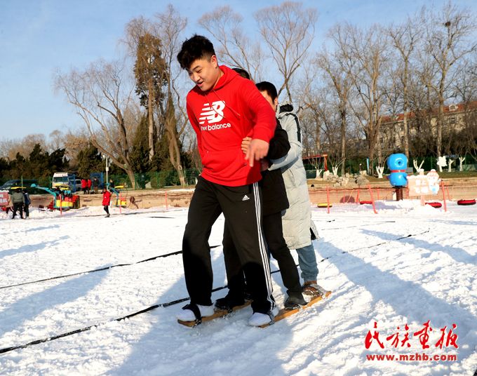 為了更好地將冰雪趣味健身賽事、冰雪健身體驗活動等送到全市各族群眾身邊,北京市民族傳統體育協會創(chuàng)造性地將綾球、高腳競速及板鞋競速等少數民族傳統體育項目與冬季冰雪相結合,整理、發(fā)展了雪地綾球、雪地高腳、雪地板鞋等項目,在現場進行展示交流,吸引大批群眾熱情參與。