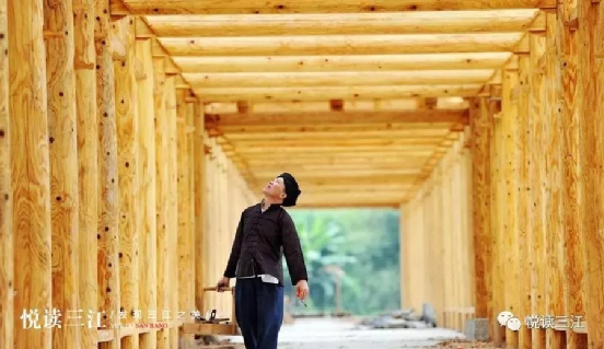 2003年,楊家第四代木構(gòu)傳承人楊求詩,成功出師。由于深得祖?zhèn)骷妓?,加之勤奮好學、悟性高,楊求詩很快成為當?shù)赜忻哪窘硯煾怠钋笤娊ㄔ斓哪窘ㄖ泄臉?、風雨橋、吊腳樓、戲臺、寨門、涼亭等,不僅繼承“干欄”式建筑的優(yōu)良特點,而且內(nèi)設(shè)吊腳,使建筑更加美觀,創(chuàng)立了別具一格的木建筑工藝體系。最近幾年,他陸續(xù)承接了一些外地的莊園、度假村、風雨橋、長廊、寨門等項目,但更多的還是修建本地鼓樓,三江的平懂、皇朝、獨峒的鼓樓均出自他的雙手。