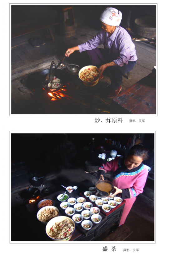 城步苗族先民的居住環(huán)境山高水冷,氣候嚴寒,蠻煙瘴氣和毒蛇蚊蟲橫行。在缺醫(yī)少藥的古代,為了本民族的生存和發(fā)展,他們只好靠多飲茶、喝濃茶抵御蠻煙瘴氣,防治疾病。但過多的喝濃茶對身體反而不適。于是,他們試行在茶湯中加入適量的雜糧和調味品,既能預防疾病,又能充饑解渴,于是便形成“油茶”的雛形。通過漫長時間的演變,才形成今天的油茶。在長期受外地生活方式的猛烈沖擊下,這種喝油茶的古俗仍然頑強地保留至今,說明苗鄉(xiāng)油茶具有其頑強的生命力。