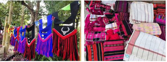翁嘎科魏明介紹:“佤族男服飾以黑或者與紅、黑白、黑紅為搭配,女服飾裙子是純手工藝以黑白、黑紅為主基調(diào), 頭飾是用銀白色的頭飾進(jìn)行裝飾,裹著一層類似于項(xiàng)鏈一樣的飾品,最原始的頭飾還是用黑布裹起來的,演變到現(xiàn)在的話還需要做一些裝飾?!?/p>