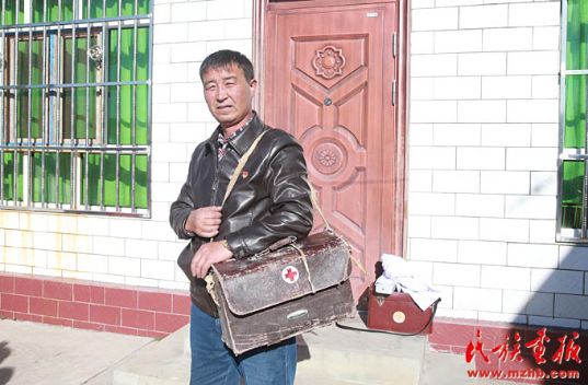 一只老式的皮藥箱、一匹馬、一個(gè)裝滿藥的馬褡子、一件綁在馬鞍后的皮大衣,見證了居馬泰·俄白克的牧區(qū)醫(yī)生生活,他那風(fēng)塵仆仆的身影在包扎墩牧區(qū)已經(jīng)成為牧民們眼中最美的身影。