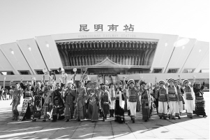 云南探索“高鐵沿線創(chuàng)建聯盟”等創(chuàng)新做法,全面深入持久開展民族團結進步創(chuàng)建工作。圖為各族群眾在慶祝高鐵開通儀式上載歌載舞。云南省民宗委供圖
