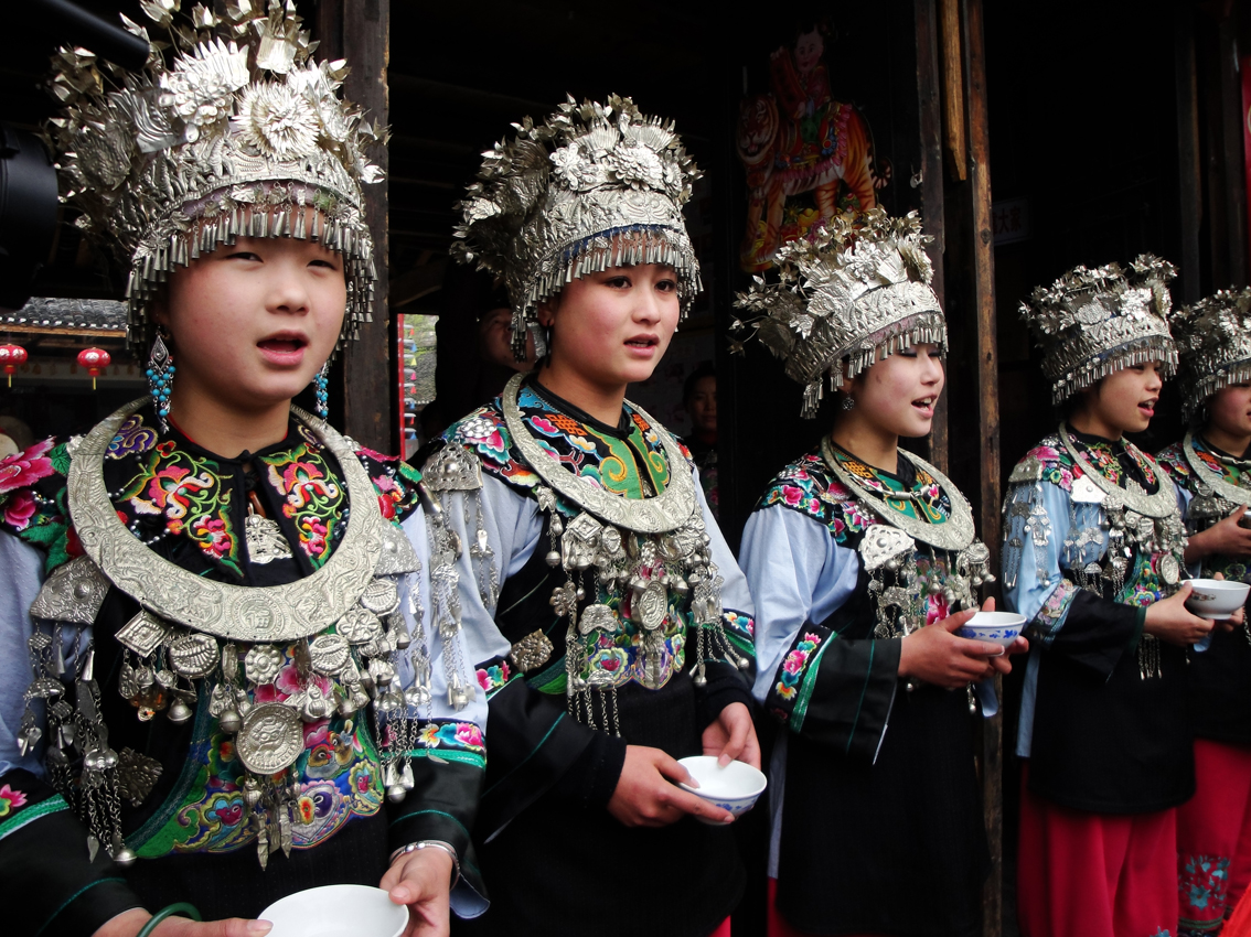 攔路酒。 苗族人熱情好客,在進苗寨途中設有“攔路酒”。一般有三、五道,最多時有十二道,如果客人酒量尚淺,只怕沒進寨門,先醉倒了。
