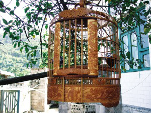 選材和傳統(tǒng)工藝是布依族鳥籠制作的兩大關(guān)鍵環(huán)節(jié)。最好的用材是優(yōu)質(zhì)畫眉竹、毛竹和青竹。竹材的采伐時間,有嚴(yán)格的要求,一般是在每年的秋收以后到第二年的正月間最為合適。其它時間采伐的竹材水性重,易蛀蟲。至于竹材,則以生長5到7年的竹子最為理想。這種年齡的竹料柔韌、堅(jiān)硬、鮮亮。布依族鳥籠全由精雕細(xì)鏤的各式竹節(jié)(條)組合而成,構(gòu)成部件做工精細(xì)。雕飾分花、素兩款,樣式有方、圓兩類。雕花鳥籠,從取材到最后組裝完成,需10天左右。鳥籠雕刻圖飾有“雙鳳朝陽”、“二龍戲珠”和“蝴蝶結(jié)”等等。