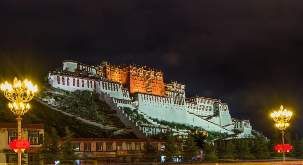 布達(dá)拉宮在西藏拉薩西北的瑪布日山上,是著名的宮堡式建筑群,藏族古建筑藝術(shù)的精華。宮堡依山而建,宮體主樓13層,高115米,全部為石木結(jié)構(gòu),5座宮頂覆蓋鎦金銅瓦,金光燦爛,氣勢雄偉,是藏族古建筑藝術(shù)的精華。