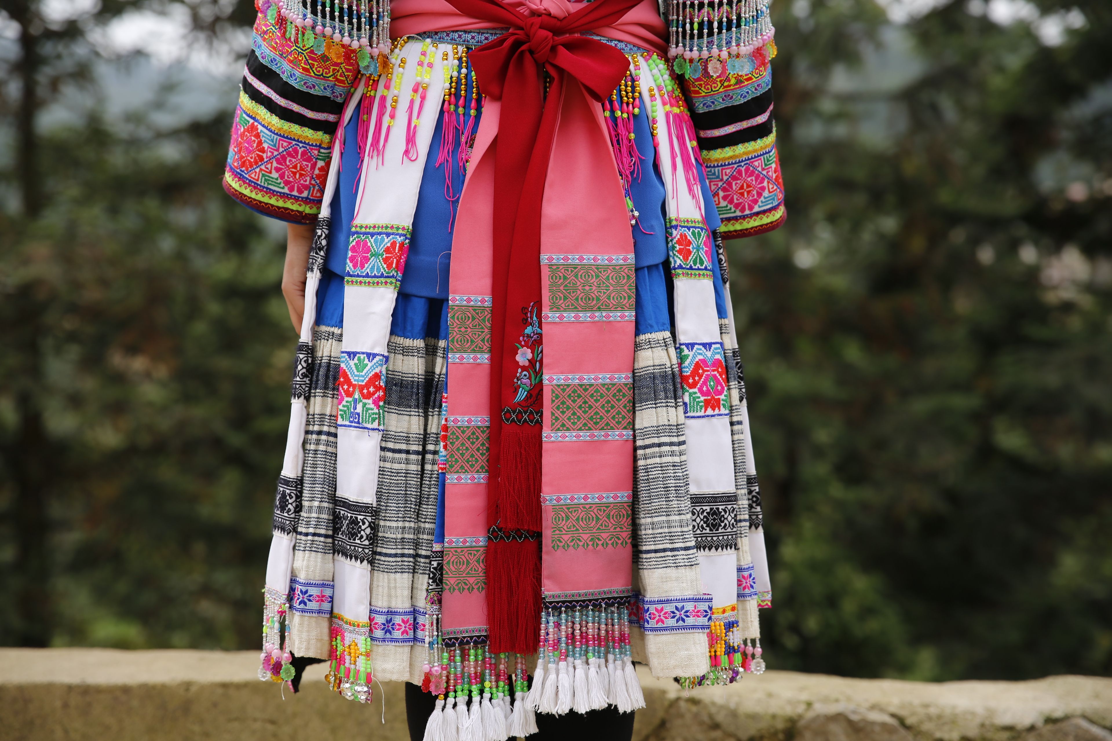 苗族女子服飾花帶百褶裙-裙擺正面2
