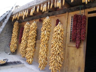 羌族人在自家小院里儲(chǔ)存的食物