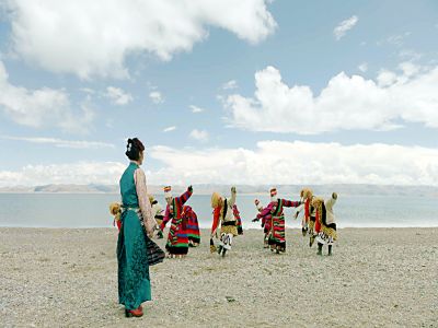 圖片名稱:藝術(shù)團(tuán)在湖邊練習(xí)磁石彈舞